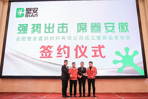 4月11日,東方雨虹民建集團(tuán)旗下壁安品牌舉行“合肥壁安建筑材料有限公司成立暨新品發(fā)布會(huì)”,來(lái)自安徽省16個(gè)地級(jí)市30余位壁安意向合作客戶出席大會(huì)。