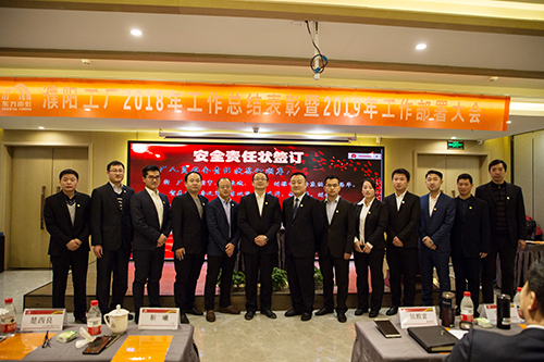 大會(huì)對優(yōu)秀員工進(jìn)行表彰。濮陽生產(chǎn)基地各部門負(fù)責(zé)人、建設(shè)開發(fā)人員簽署2019年度安全責(zé)任狀。