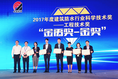 12月7日,全國建筑防水行業(yè)質(zhì)量提升工作大會暨2017年建筑防水行業(yè)年會在海口召開。大會公布中國建筑防水工程“金禹獎”獲獎名單,東方雨虹以兩金一銀的成績名列榜單首位。應用技術中心總工助理林海俠女士代表東方雨虹領獎。