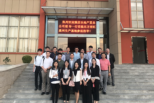 10月30日,雅居樂地產(chǎn)置業(yè)公司采購(gòu)中心總經(jīng)理李守飛、工程總監(jiān)楊賢棟等一行15人考察東方雨虹惠州生產(chǎn)基地。