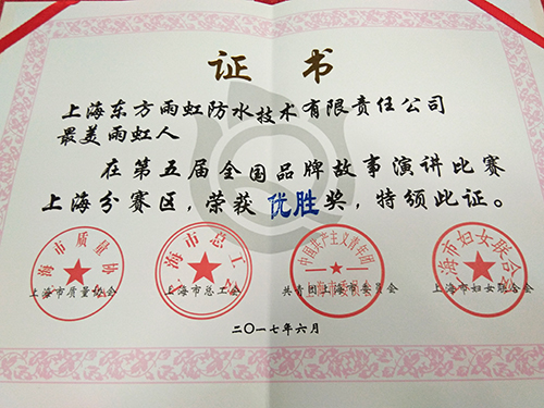 6月29日,為了進一步推廣品牌觀念和品牌文化,提高上海品牌影響力,由工業(yè)和信息化部委托,中國質量協(xié)會聯(lián)合上海市質量協(xié)會、上海市總工會等主辦的第五屆全國品牌故事大賽(上海賽區(qū))在上海建工大廈召開。上海市質量協(xié)會會長唐曉蓉、上海市政管理委員會辦公室副主任周赤出席了本次大會。上海東方雨虹榮獲了本屆大賽演講比賽優(yōu)勝獎、征文比賽三等獎。 本次比賽吸引了約40個單位,100多名代表到場。比賽品牌涉及面廣,既有來上海浦江飯店、上海郵政等傳統(tǒng)企業(yè);也有來自上海電氣電站集團、中國商飛集團等先進制造業(yè)和現(xiàn)代服務業(yè)企業(yè)。作為防水行業(yè)的優(yōu)秀代表,上海東方雨虹也參加了本屆大賽。 賽場上,雨虹人通過講述身邊的真實故事,借助富有感染力的演講,傳遞出了東方雨虹全力為構筑和諧人居貢獻力量,全面踐行“為人類為社會創(chuàng)造持久安全的環(huán)境”的企業(yè)使命。最終,榮獲本屆大賽演講比賽的優(yōu)勝獎。