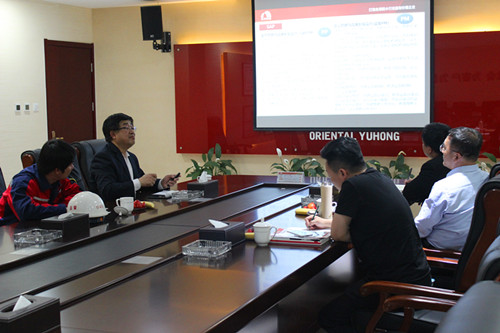 4月28日,河北省防水協會會長楊際梅參觀東方雨虹唐山生產基地,并就“兩化融合”與唐山生產基地廠長馬到原展開交流。