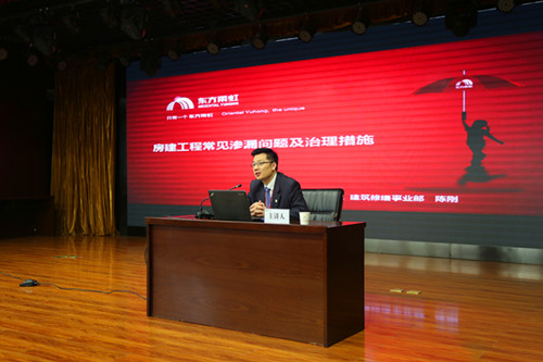 4月14日,防水施工與防滲漏技術(shù)及“智慧工地”知識(shí)講座在湖南長沙五礦二十三冶建設(shè)集團(tuán)總部召開,本次會(huì)議由五礦二十三冶建設(shè)集團(tuán)主辦,東方雨虹協(xié)辦。五礦二十三冶建設(shè)集團(tuán)副總經(jīng)理吳建國、技術(shù)中心總經(jīng)理路惠明攜二十三冶總包單位、設(shè)計(jì)單位代表出席會(huì)議,東方雨虹工渠(中國)修繕業(yè)務(wù)部南方區(qū)副總工程師陳剛、技術(shù)服務(wù)部湖南副總工程師艾淇涌進(jìn)行課程分享。