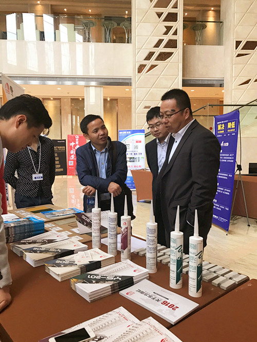 會上,朱衛如作“裝配式建筑密封膠防水系統解決方案”主題報告,從裝配式建筑密封防水系統的開發背景和產品研制來源入手,針對裝配式建筑防水提供系統解決方案;詳細介紹了東方雨虹改性硅酮密封膠系列產品的產品性能、優勢和施工工藝,其中包括建筑石材專用改性硅酮密封膠、PC建筑專用改性硅酮密封膠、門窗專用改性硅酮密封膠和防霉專用改性硅酮密封膠,這四款產品貼合裝配式建筑的特點,系統滿足了裝配式建筑密封防水的功能需求,尤其適用于裝配式建筑工程。