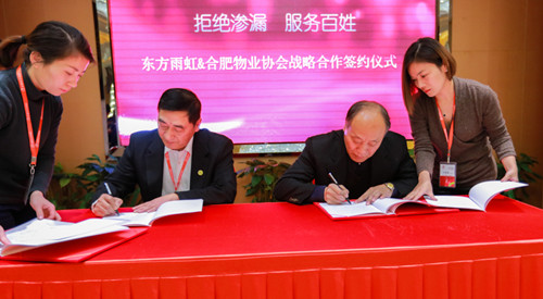 12月28日,北京東方雨虹防水技術(shù)股份有限公司與合肥物業(yè)協(xié)會在合肥豐大國際大酒店舉行了戰(zhàn)略合作簽字儀式,協(xié)議從2017年1月1日起生效,為期三年。東方雨虹工程渠道南方修繕事業(yè)部副總經(jīng)理竇吉培、東方雨虹合伙人王建安,合肥物業(yè)協(xié)會會長候建平、秘書長程純潔、副會長及會員企業(yè)負(fù)責(zé)人等共四十余人出席了簽約儀式。