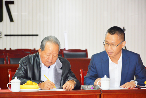 老撾原中央政治局常委、副總理阿?!诶铮ㄗ螅?、風行防水總經理呂學強(右)