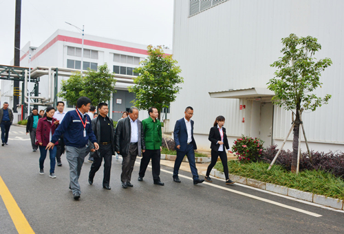 11月3日上午,老撾原中央政治局常委、副總理阿?!诶锛霸颇宵S龍集團董事長王超,云南黃龍集團總經理李伯良,昆明祿豐商會會長王自成,昆明姚安商會秘書長楊滿權一行18人參觀風行防水昆明生產基地,風行防水總經理呂學強陪同考察。