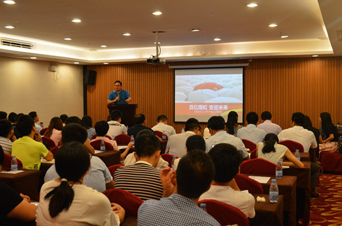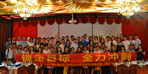 7月30日,以“鎖定目標,全力沖刺”為主題的廣東東方雨虹2016年第二季度業(yè)務系統銷售明星會暨《雨虹知多少》發(fā)布會在涵天酒店九樓舉行。廣東東方雨虹董事長楊浩成、常務副總經理孫福琴、總經理助理張舜苗、總經理助理王超以及業(yè)務系統、職能系統共計70多名員工出席了此次會議。