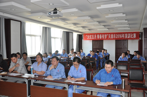為了加強(qiáng)企業(yè)文化建設(shè),豐富職工的文化生活,2016年5月4日,天鼎豐公司舉行了一場(chǎng)以 “青春 夢(mèng)想”為主題的演講比賽初賽,來(lái)自各部門(mén)、車(chē)間的29名員工參加了比賽。天鼎豐董事長(zhǎng)聶松林為每位參賽選手的演講做了點(diǎn)評(píng)。 比賽中,29名參賽選手把“企業(yè)夢(mèng)”融入“個(gè)人夢(mèng)”,結(jié)合自己的工作與生活及身邊的感人事例,以激情昂揚(yáng)的歌頌,情深意切的講述,鏗鏘有力的語(yǔ)言,表達(dá)了為夢(mèng)想奮斗的決心,抒發(fā)了建功青春的勇氣和愛(ài)企榮企的熾熱情懷,充分展示了公司青年員工飽滿的精神面貌和昂揚(yáng)向上的工作激情。《我的青春我做主》、《我拿青春換夢(mèng)想》、《“改變”讓夢(mèng)想插上翅膀》等演講,更是感情豐富,思考深入,贏得臺(tái)下觀眾熱烈的掌聲。
