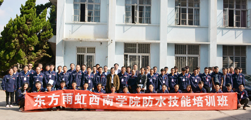 4月7日上午,東方雨虹職業技術學院西南學院在昆明風行防水材料有限公司組織開展了獲取國家職業資格證的防水技能專項培訓。來自四川、云南等地的工程渠道代理商及施工工人、直屬業務施工工人共計60余名學員參加了本期培訓班。 昆明風行防水材料有限公司總經理呂學強先生首先致歡迎詞,并預祝各位學員取得優異成績。會上,東方雨虹人力資源總監、東方雨虹職業技術學院院長丁毅先生發表了關于工匠精神、傳承及未來防水行業防水工人的要求及社會地位提高的講話,并強調了術業有專攻,本次防水技能培訓一是要注重精神,切實做到“匠心匠魂”;二是要注重流程,熟練掌握技能,通過培訓不斷學習,助推防水行業的飛躍。