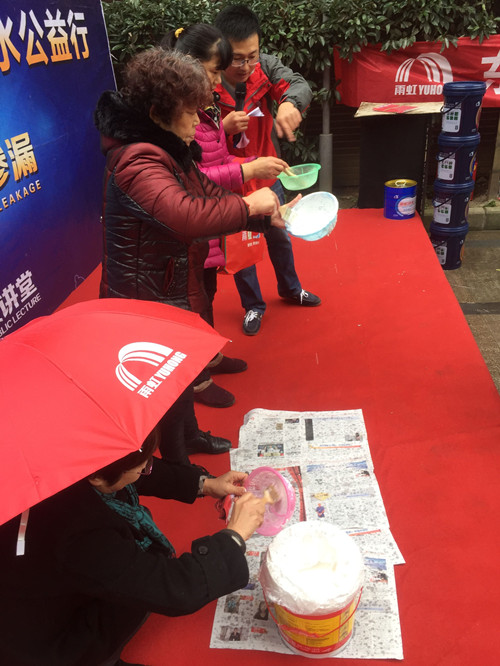 在北京,由雨虹技術中心劉超工程師為北京的百姓帶來了防水防滲漏的課程,從防水的做法,到如何驗收,如何監工,每一個細節都進行了詳盡講解。現場還進行了豐富多彩的互動活動,對防水知識點進行有獎問答互動,寓教于樂。
