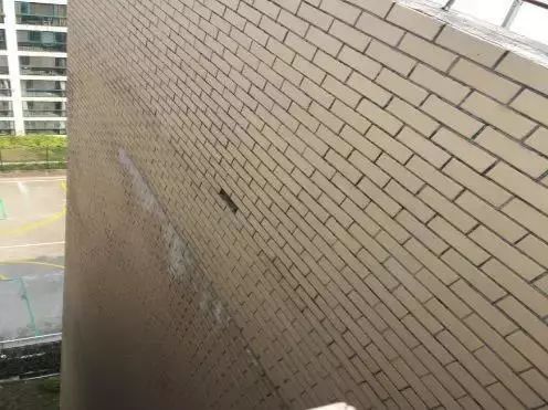 女兒墻與屋面結(jié)合處外墻面通常會出現(xiàn)一圈較大裂縫,雨水通過外墻面裂縫進入墻體而滲入室內(nèi)。