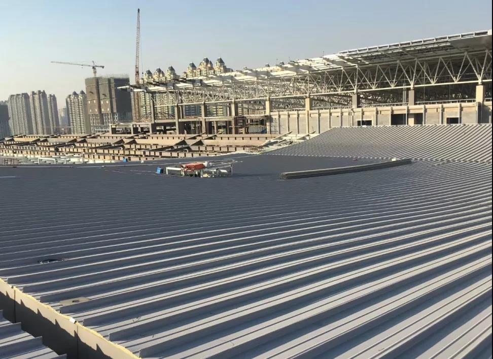 如此優(yōu)質大型的重鋼型建筑,其屋面“泉水”造型設計是點睛之筆,為了實現(xiàn)這一設計,構成屋面系統(tǒng)的防水、保溫、吸音等功能材料受到業(yè)主的重點關注。在眾多解決方案中特衛(wèi)強屋面系統(tǒng)方案脫穎而出。